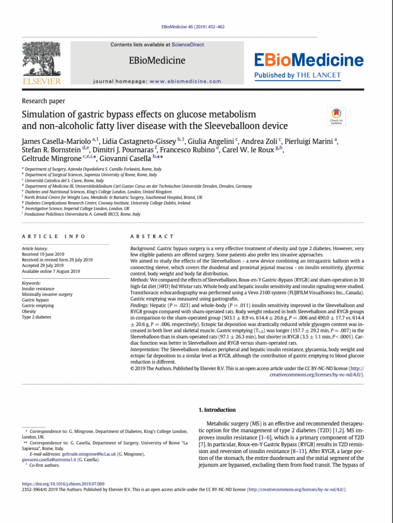 The rodent data obtained with ForePass shows that the device is expected to reach the same unmatched efficacy of metabolic surgery, primarily a remission of insulin resistance and substantial weight loss.